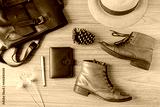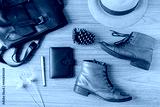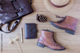 Vintage feminine acessories on a wooden background. Fashion concept.
