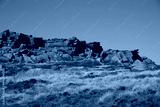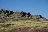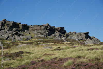Cliffs of Stanage Edge in Derbyshire Peak District on bright sunny day