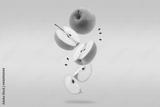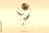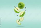 Stack of green Apple falling or flying.Creative levitation food