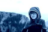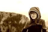 Outdoor portrait of adorable 8 year old girl, wearing hood, playing in national park, early summer weather.