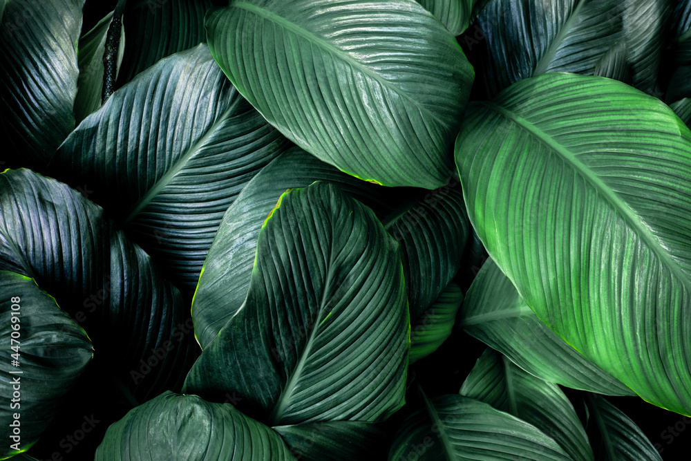 Full Frame of Green Leaves Pattern Background, Nature Lush Foliage Leaf Texture , tropical leaf