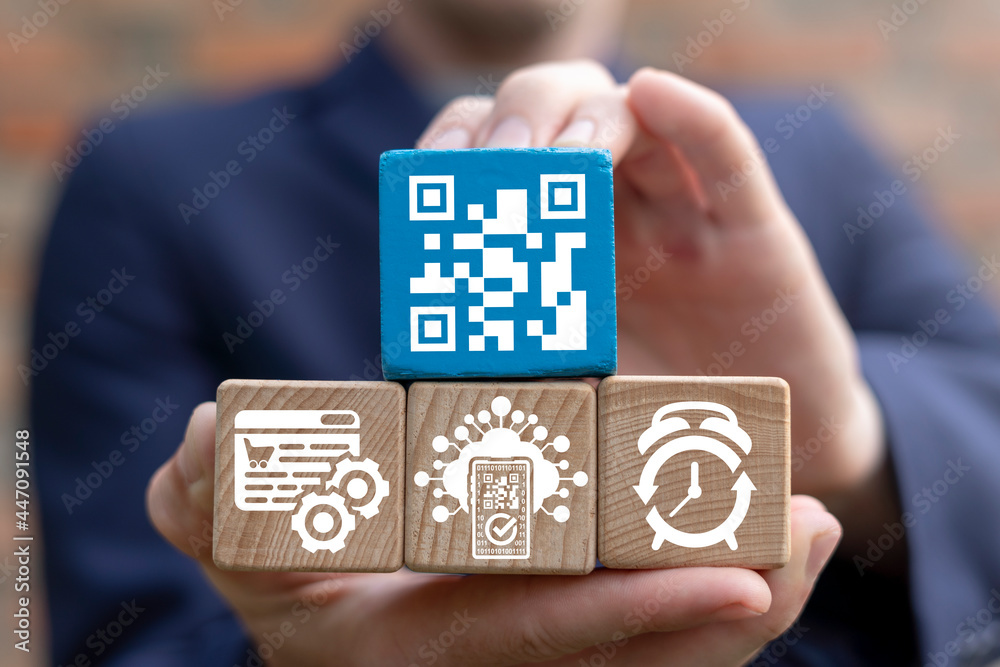 Concept of qr code. Shopping product identification with phone application and qr code.
