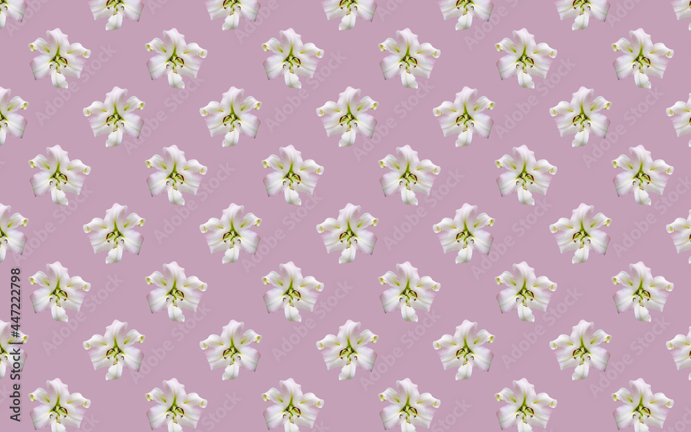 Beautiful flowers lilies. Seamless pattern of Lily flower bloom. Floral natural background.