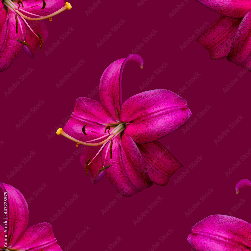 Beautiful flowers lilies. Seamless pattern of Lily flower bloom. Floral natural background.