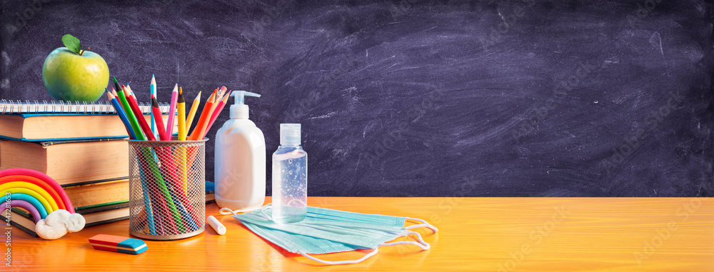 Back To School - Stationery With Covid-19 Protective Mask And Sanitizer