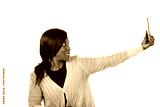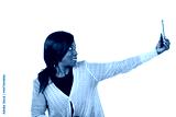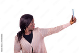 portrait of a beautiful woman self-photographing, smiling.