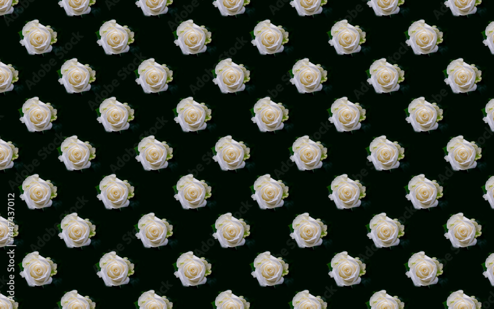 Beautiful white rose flowers. Blooming roses seamless pattern. Floral natural background.
