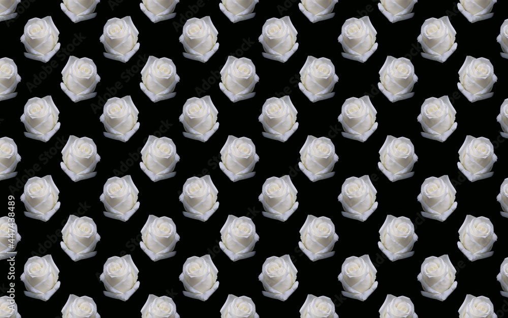 Beautiful white rose flowers. Blooming roses seamless pattern. Floral natural background.