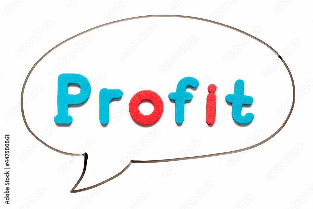 Alphabet letter with word profit in black line hand drawing as bubble speech on white board background