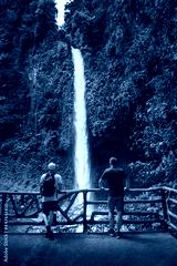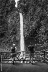 Two tourists looking at the La Fortuna Waterfall in Costa Rica