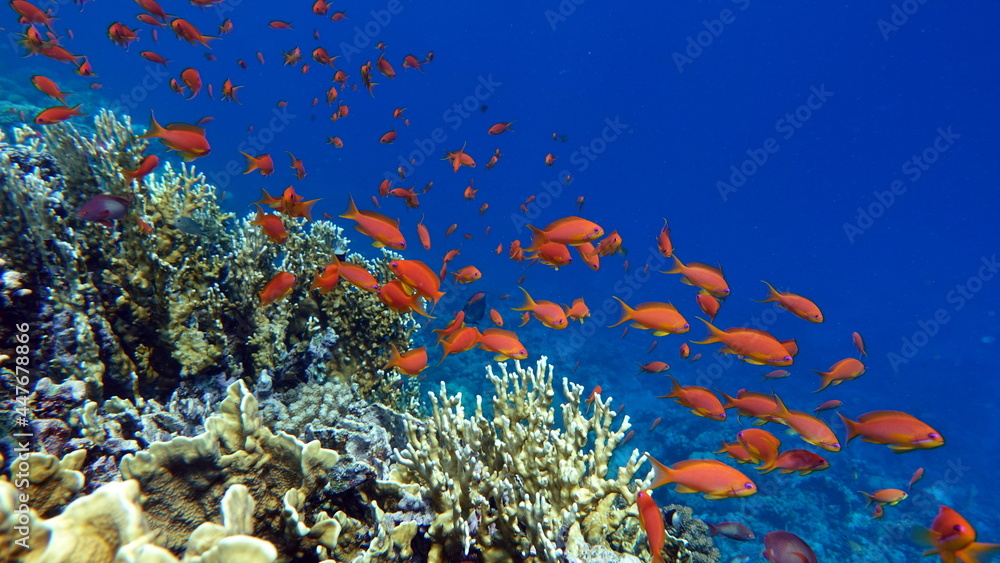 Sea Goldie. The most common antias in the Red Sea. Divers see him in huge flocks on the slopes of coral reefs.