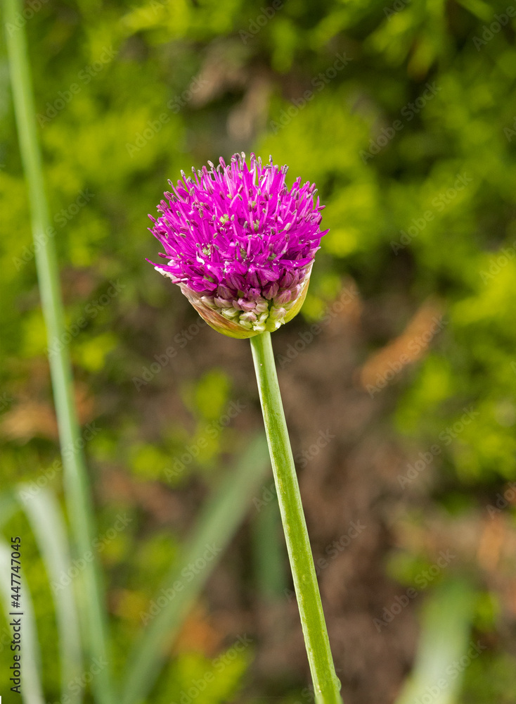 Emerging Allium flower in early spring, Pickmere, Knutsford, Cheshire, UK