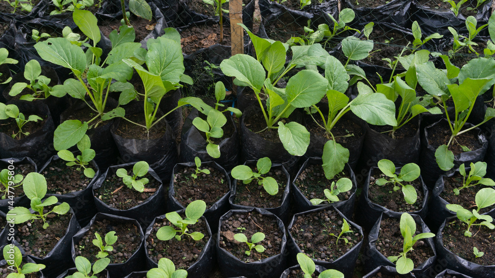 Mustard plants in polybags, one of the vegetables that can be grown in limited land and various climates