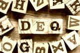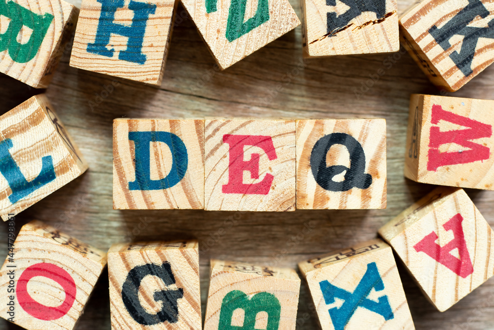 Alphabet letter block in word DEQ (Abbreviation of Delivered Ex Quay) with another on wood background