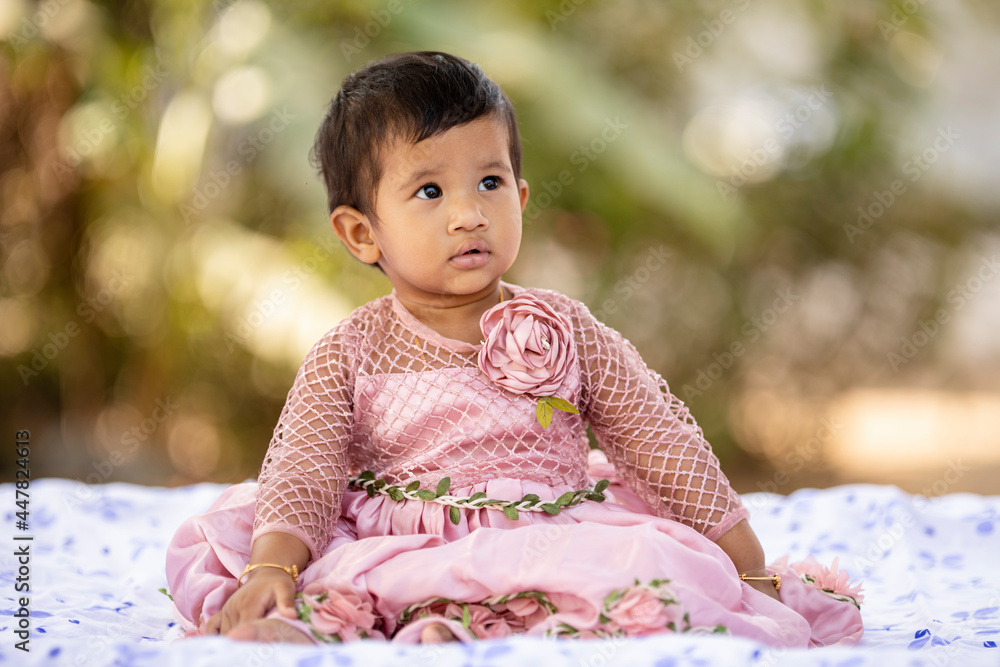 Cute Indian baby girl portrait at outdoor.