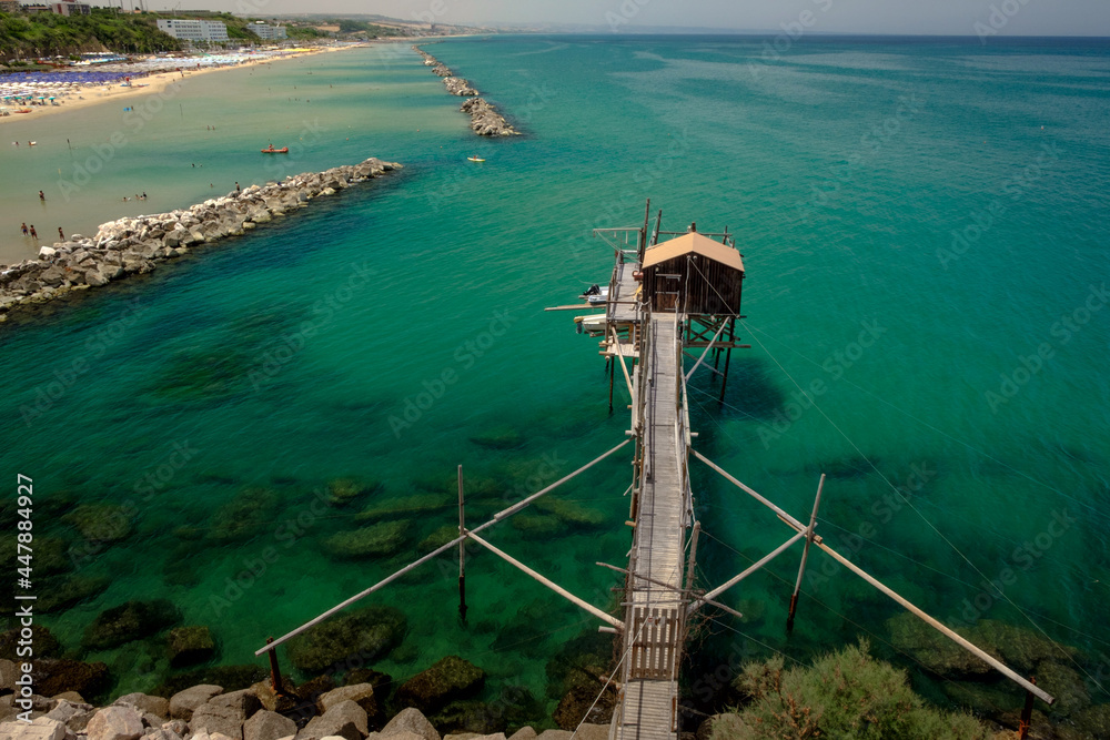 The amazing adriatic sea with fishing trebuchet on the beach of Termoli , Molise , Italy
