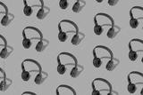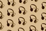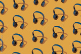 Pattern with headphones on a yellow background. The concept of listening to contemporary music.