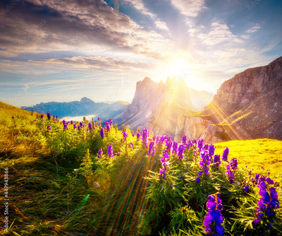 Magical view of the Odle mountain range and Furchetta peak, Val Gardena.