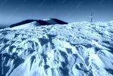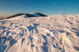 Snow wavy surface created by a wind on the frozen slope. Abstract winter backdrop.