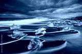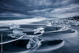 Majestic pieces of the iceberg sparkle on black sand. Location place Jokulsarlon lagoon, Iceland, Europe.