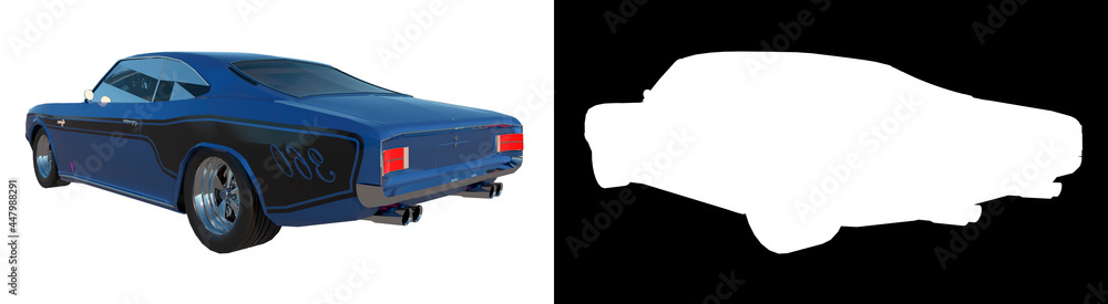 car city tourism transport 1970s 2- Perspective B view white background alpha png 3D Rendering Ilustracion 3D