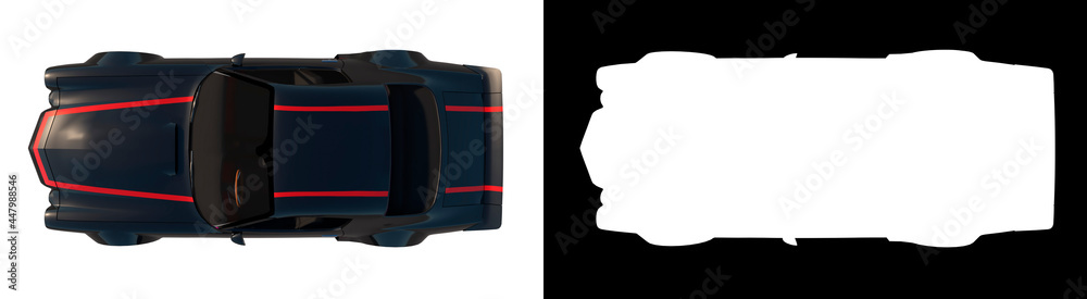 sport car city tourism luxury transport 1970s 1- Top view white background alpha png 3D Rendering Ilustracion 3D