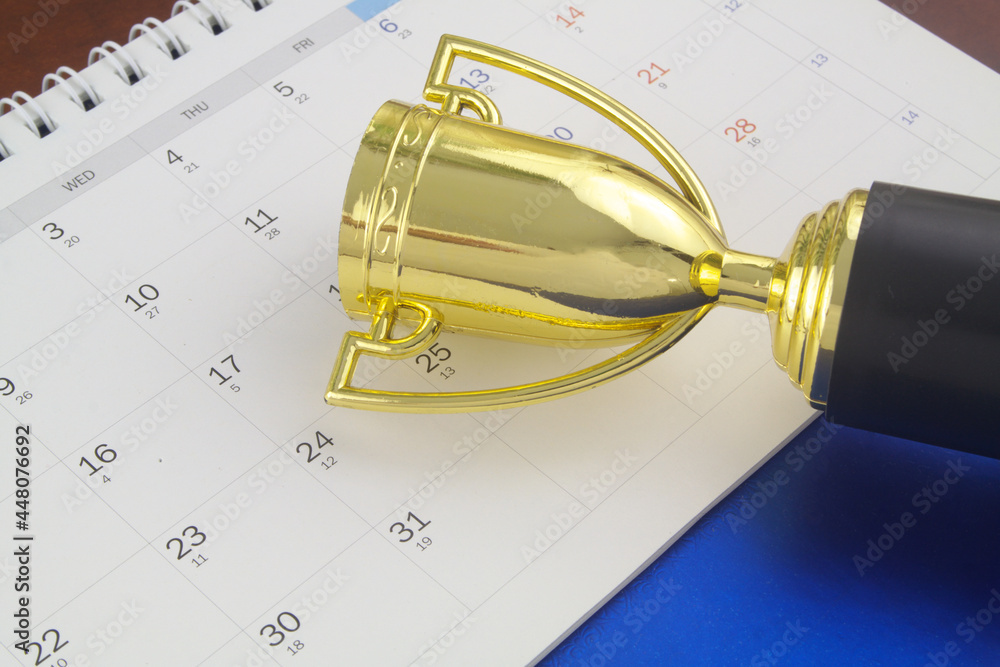 Champion trophy cup on calendar