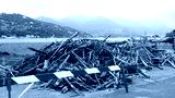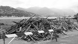 Europe, Italy, Como, July 2021 extensive damage after the flood in Como - Lake Como is full of woods and trees undermined by the force of the storm due to rain and overflowing rivers