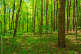 Green Deciduous Forest Summer Nature. Sunny Trees And Green Grass. Woods Background. Instant Toned Image