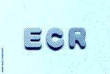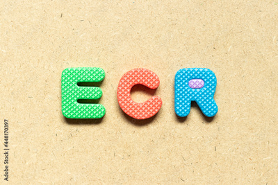 Foam alphabet letter in word ECR (Abbreviation of Efficient Consumer Response, Early Career Researcher, Engine control room) on wood background