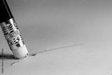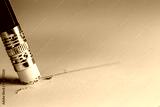 Closeup pencil eraser or delete on paper for removing a written mistake.Examination for fix and correct or change some incorrect and problem in business concept.