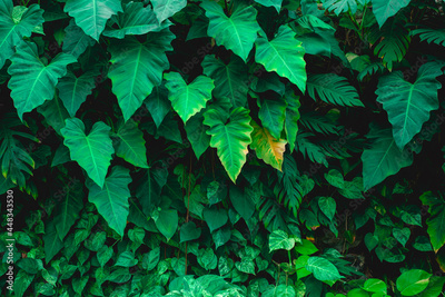 Full Frame of Green Leaves Pattern Background, Nature Lush Foliage Leaf Texture , tropical leaf