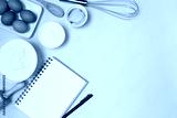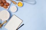 food ingredients on a blue background
