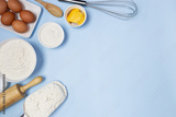 food ingredients on a blue background