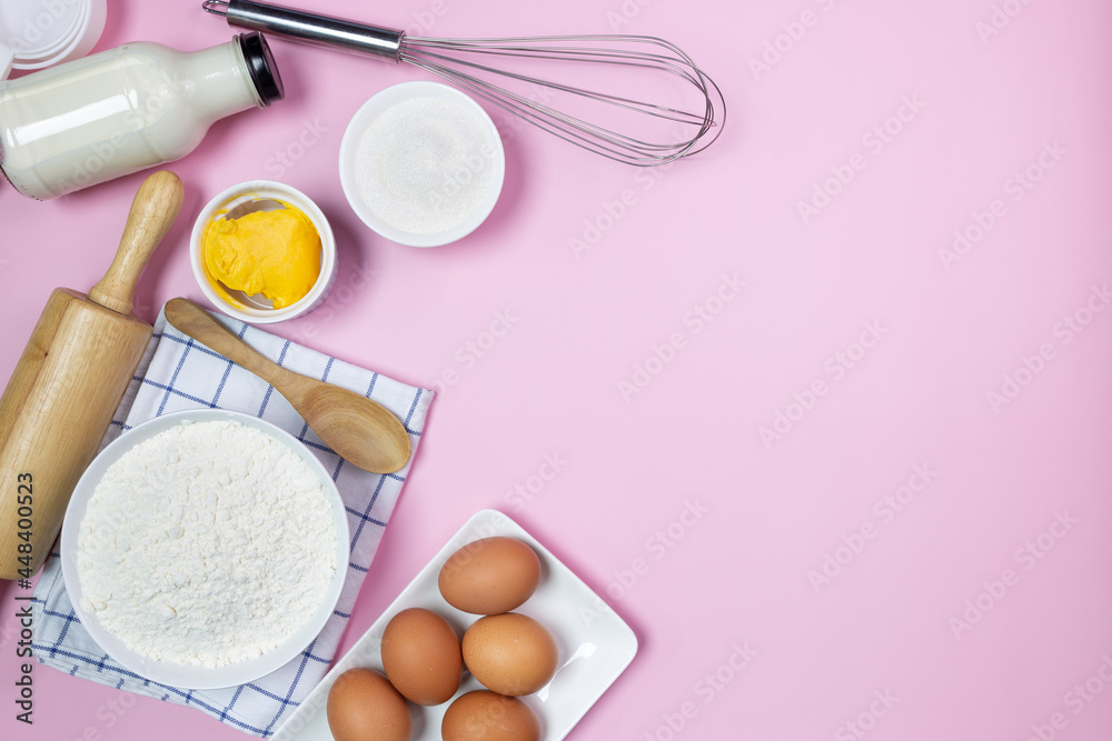 food ingredients recipe on pink background