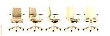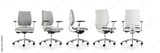 office chair with wheels on white background. Various views: front, 3/4 side, front, side, 3/4 back, back