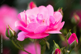 Blooming wild pink roses bush. Macro view. Shallow depth of field. selective focus.