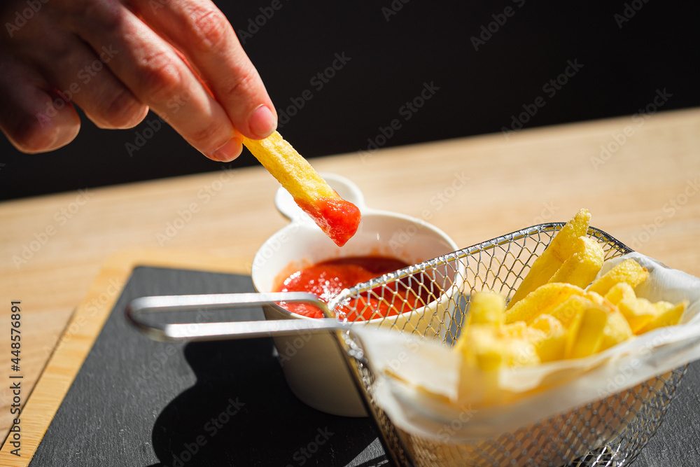 French fries with tomato ketchup sauce