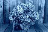 Beautiful bouquet of arranged Blue Hydrongea flowers in a silver vase given as an emotional sentiment