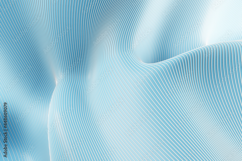 Creative blue lines and curves backdrop. 3D Rendering.