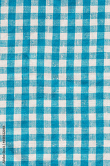 Old Retro Classic Design Linen Plaid Fabric Tablecloth. Abstract Background, Blue And White Colors.