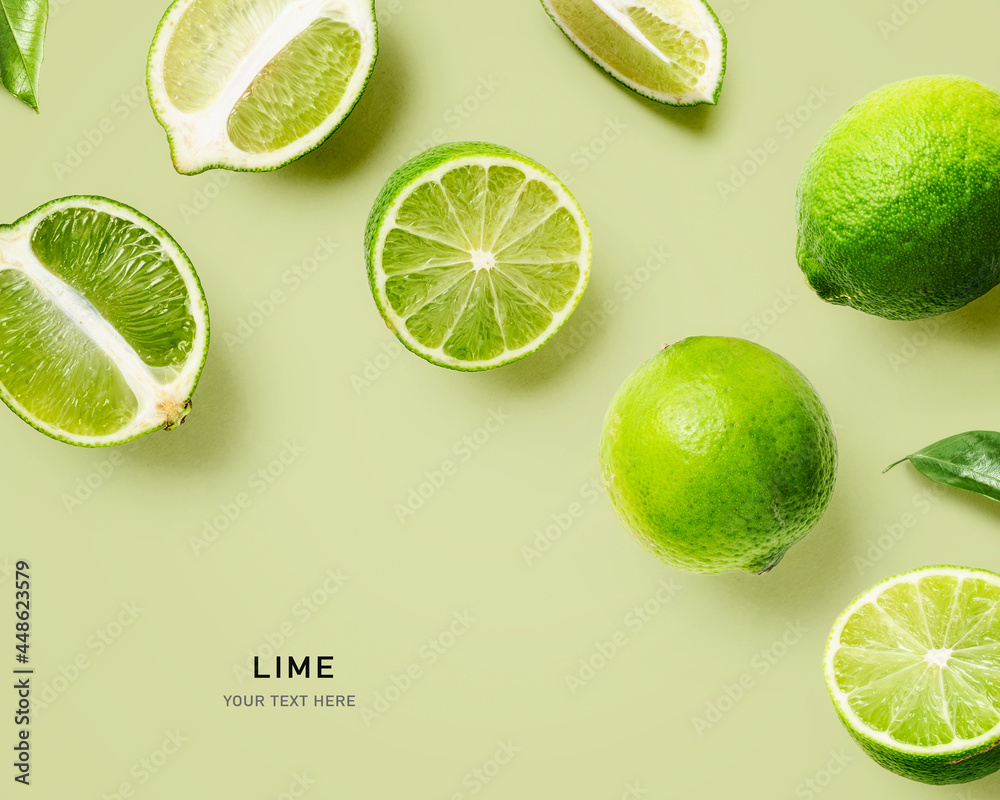Lime citrus fruits composition and creative color card.