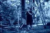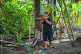 farmer in coconut tree farm harvesting fresh coconut palm juice