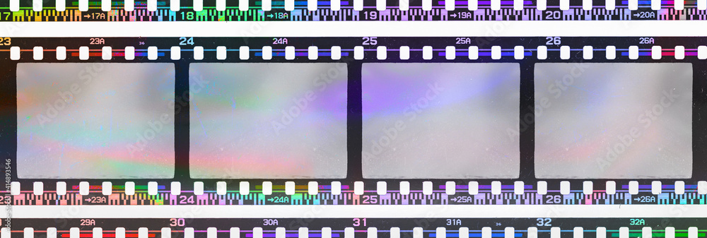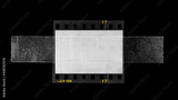 empty or blank 35mm dia film frame fixed by transparent sticker adhesive tape on black background. poster or design element.