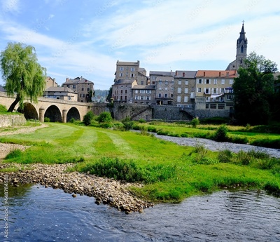 VILLAGE DE TENCE ET RIVIERE LE LIGON HAUTE LOIRE FRANCE