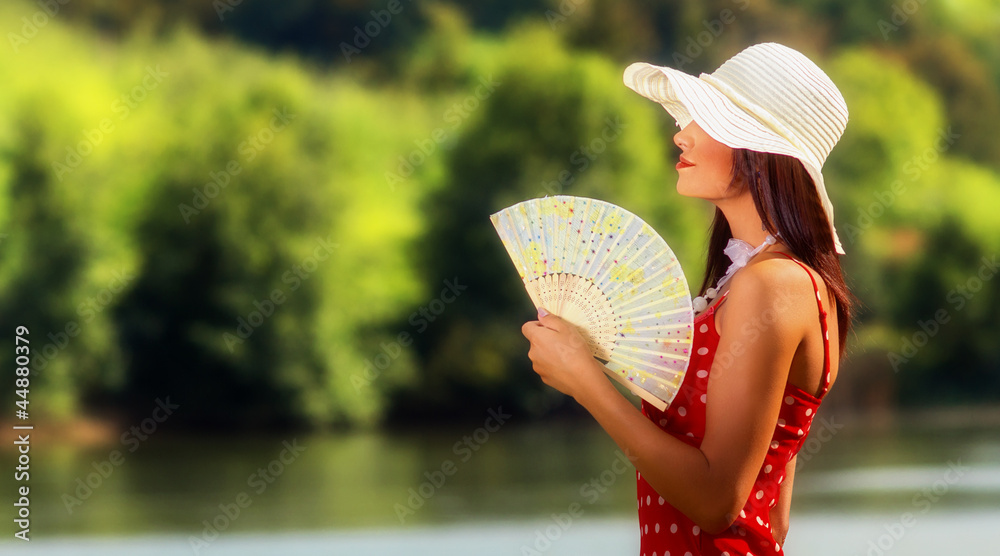 Young woman relaxing on lake
