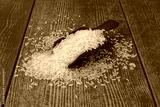 raw white rice on dark rustic wooden background
