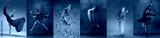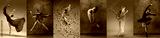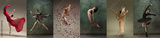 Collage of portraits of male and female ballet dancers dancing isolated on dark vintage background. Concept of art, theater, beauty and creativity