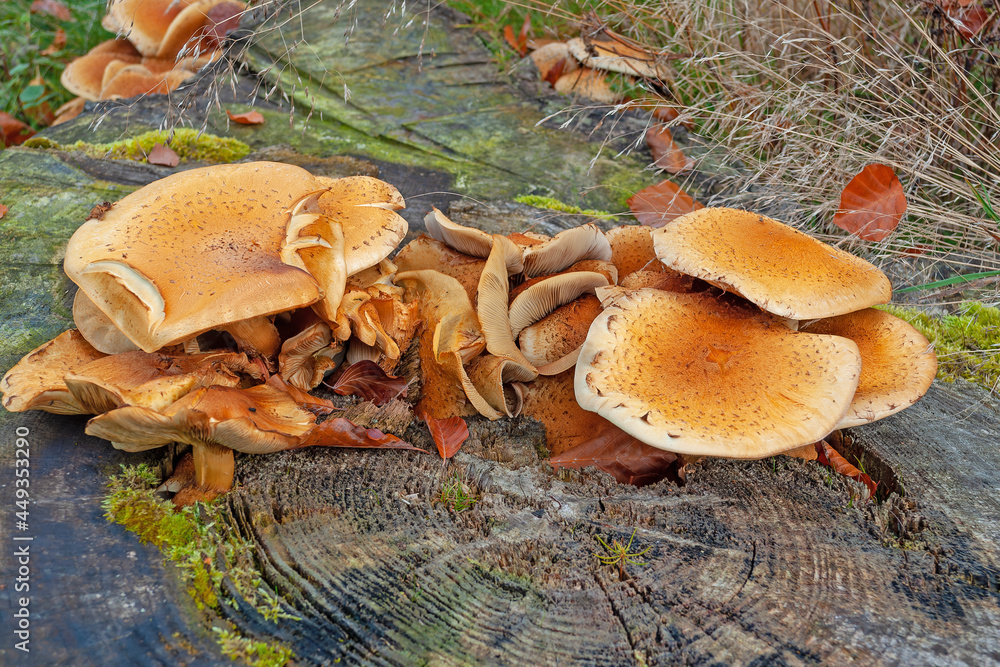 Fruchtkörper vom Hallimasch, Armillaria, in einer Nahaufnahme