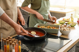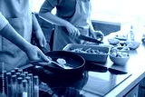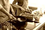 Young couple cooking in kitchen